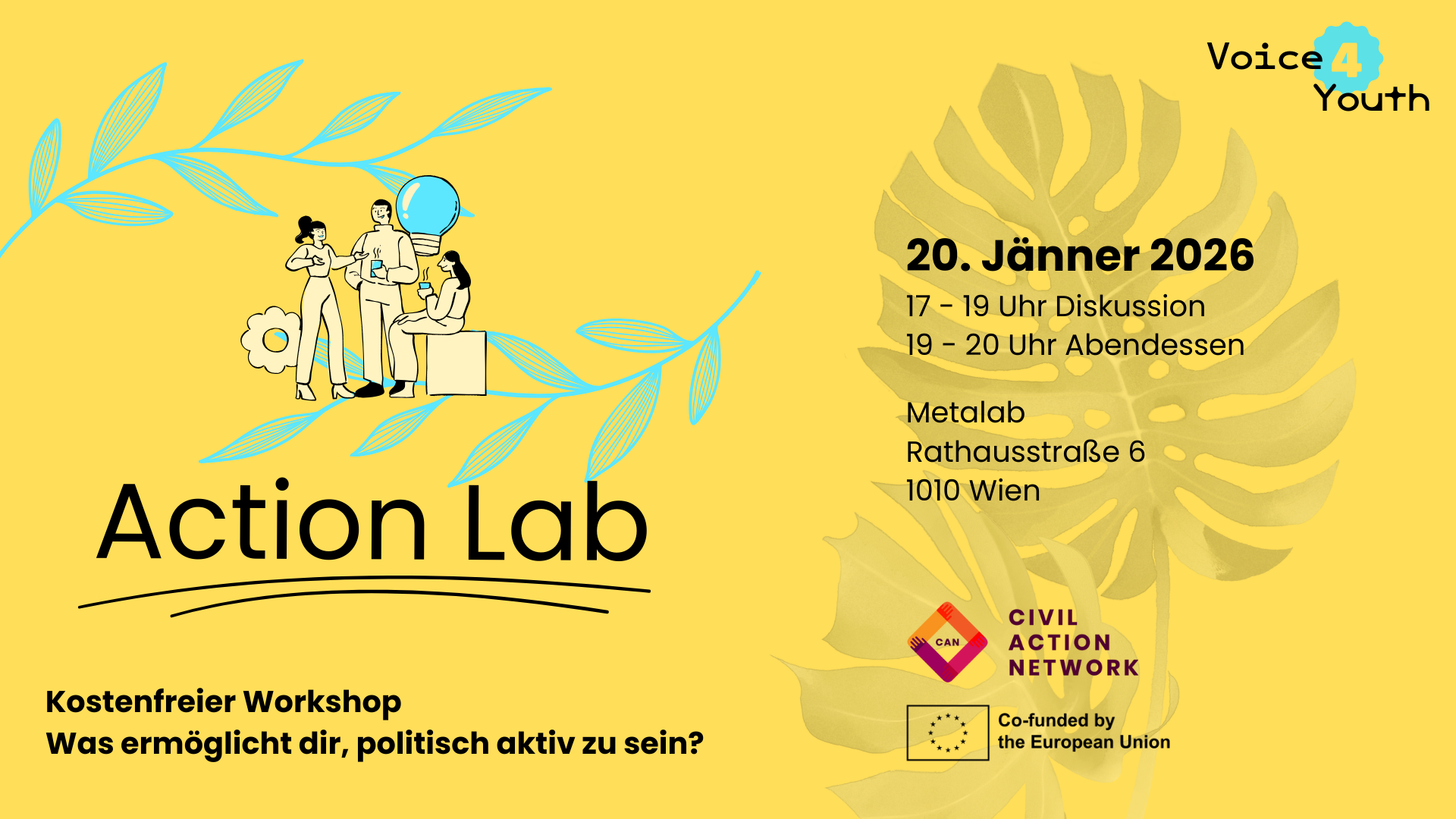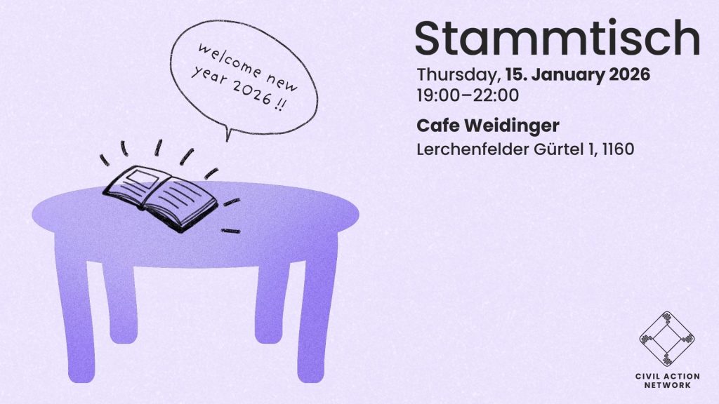 Nach der sehr erfolgreichen Weihnachtsausgabe unseres Stammtischs im Dezember, bei der wir viele von euch begrüßen durften, um über das vergangene Jahr zu sprechen, laden wir nun zum ersten Stammtisch im Jahr 2026 ein. Es wird das erste CAN-Treffen im neuen Jahr sein, und du bist herzlich eingeladen, dabei zu sein und deine Weihnachtserinnerungen und Neujahrsfeierlichkeiten mit uns zu teilen. Wir sind außerdem gespannt darauf, zu erfahren, welche Erwartungen du für 2026 hast und ob du bereits zivilgesellschaftliche Aktionen geplant hast.